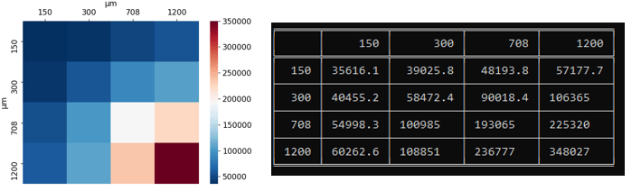 This returns 2-dimensional arrays with statistics, and I then print out the table and heatmap by